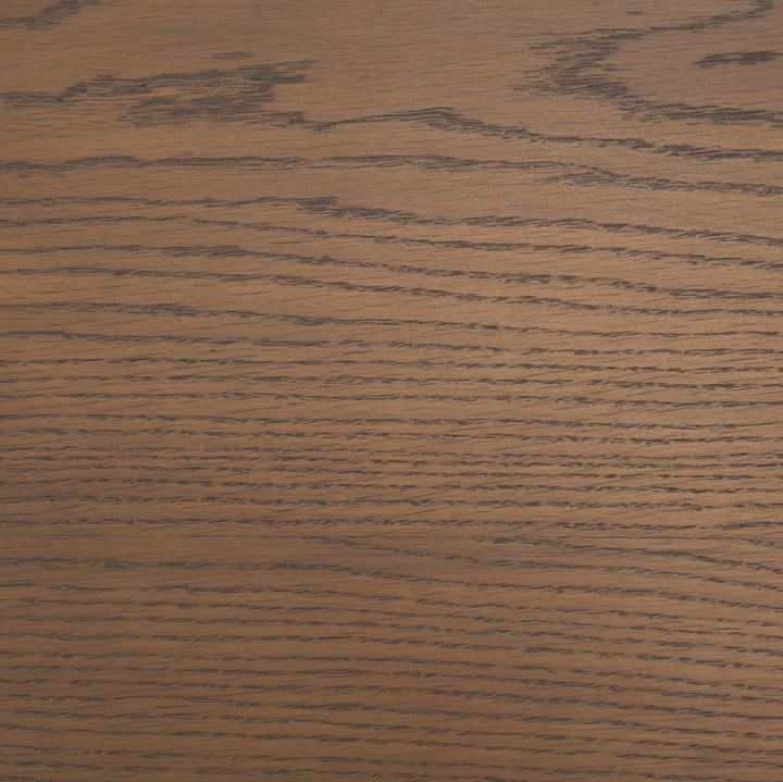 - Laraya is crafted from solid oak, and engineered wood with an oak veneer, stained in a rich dark brown stain that shows off oak's famously beautiful grain.