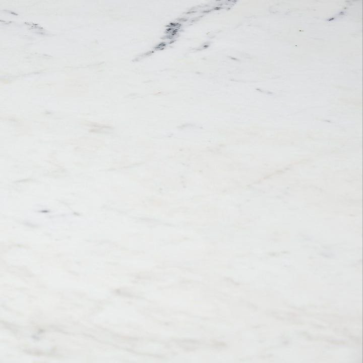 - The white marble top has creamy undertones with gray and beige veining throughout. Marble is a natural material. Each piece has its own beautiful intricacies, and some may carry naturally occurring fissures. Please expect variations in color and texture. No two pieces are alike.