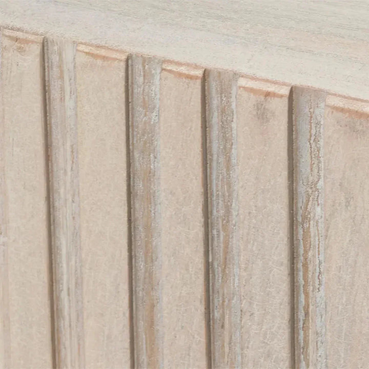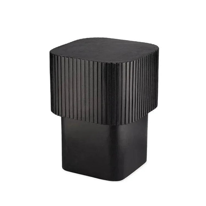 Inspired by European clockworks, the Notch Square Wood Table showcases clean, modern lines highlighted by richly textural ribbing around its top half. Expertly hand-carved from sustainably sourced mango wood, each table is a unique work of art. Available in White Bleach or Black finishes, it serves as a versatile accent piece whether styled alone or grouped together for a striking statement. With its distinctive ribbed detailing and artisan craftsmanship, this table brings texture, elegance, and functionality to any space.