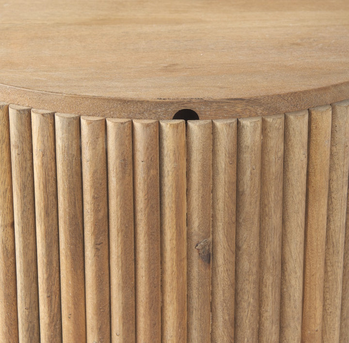 Terra Wood Fluted Side Table With Hidden Storage Features:
