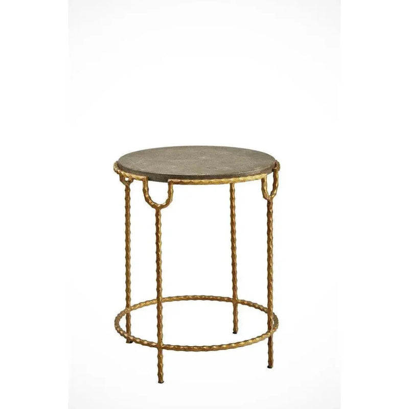 Transform your home with the chic and daring Erabella Side Table. The robust iron base, reminiscent of gold bracelets, upholds a circular bluestone surface. For added impact, combine it with the coffee table and console. Take daring leaps and elevate your decor with the Erabella Side Table!