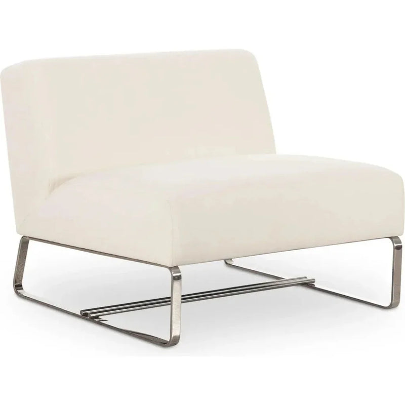 The Jules outdoor accent chair features an armless design with a wide, soft, padded seat that invites hours of relaxation. The chair stands on a shiny, chrome metal base, giving it a sleek, updated look, while its water-resistant, all-weather fabric upholstery makes it a practical outdoor perch. Experience unparalleled comfort with the Jules armless accent chair. The wide, soft, and padded seat is designed for ultimate relaxation, while the shiny chrome metal base adds a modern touch. Plus, the water-resistant fabric upholstery ensures durability in any outdoor setting.