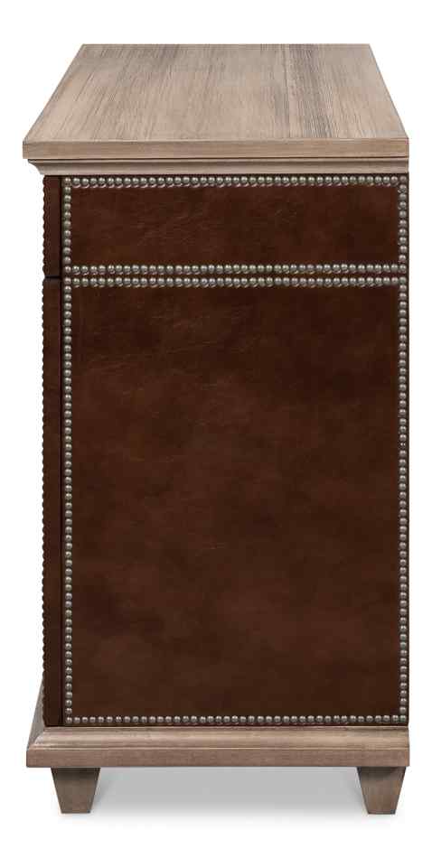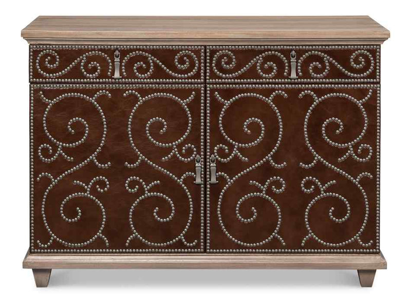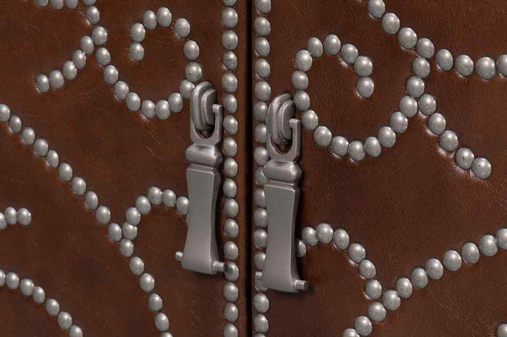 Strong, masculine, and always prefectly refined, the Theodore door chest defines space and those who select it. Wrapped in leather with hand-hammered nailhead accents, Theodore is a door chest that simply cannot be denied.