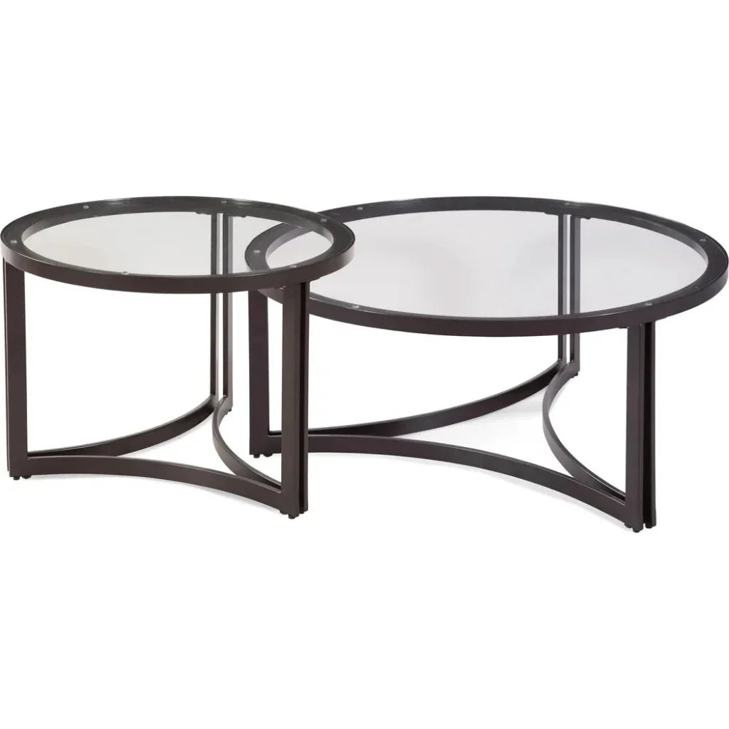 Trucco Metal and Clear Glass Black Round Nesting Cocktail Table Features: