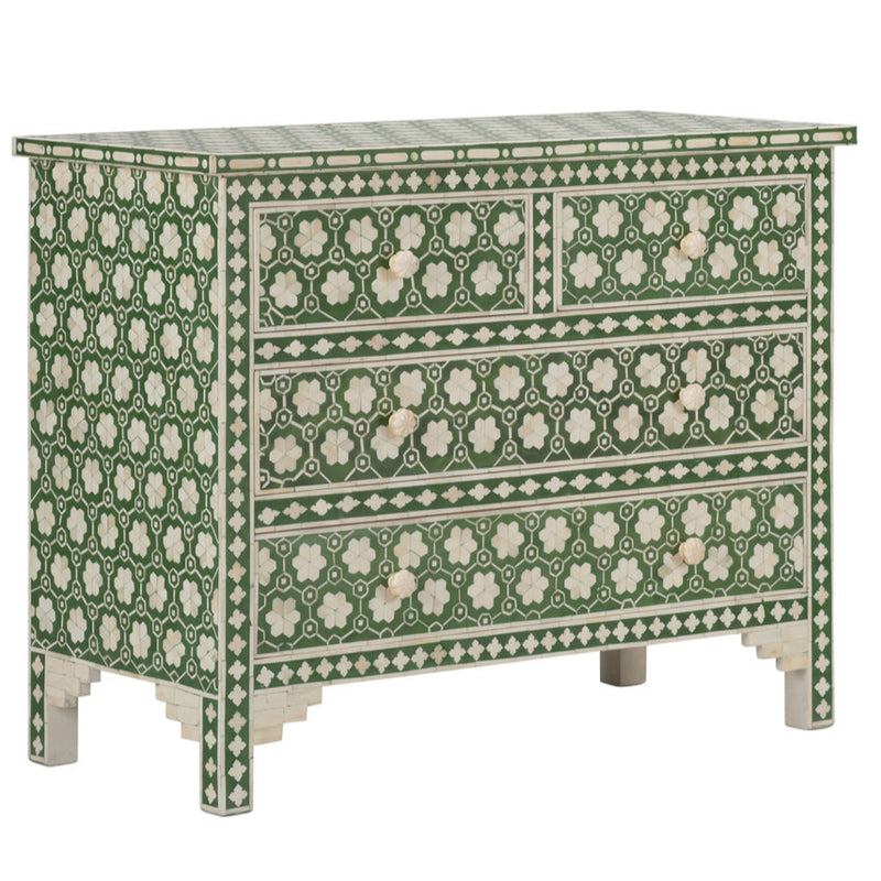 Clark Chest Timeless Green Inlaid Floral Design Features: