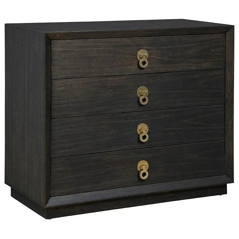 The Buxton Chest collection offers the perfect balance of style and practicality, with both the Large and Small versions crafted from solid wood and featuring a rich dark finish that adds elegance to any room. The dark wood is beautifully complemented by striking gold handles, enhancing the overall aesthetic and adding a touch of sophistication. Both chests are designed to be versatile, seamlessly blending with modern and traditional decor while serving as functional storage solutions. Each chest includes four spacious, soft-close drawers, providing ample space for your belongings while ensuring a smooth and quiet closing experience. The solid wood construction ensures durability, while the elegant gold pulls add a touch of luxury. Whether placed in a bedroom or living area, both the Large and Small Buxton Chests elevate the style quotient of your home, offering timeless charm, premium storage, and fine craftsmanship. Perfect for those seeking beauty, utility, and a statement piece that enhances any space.