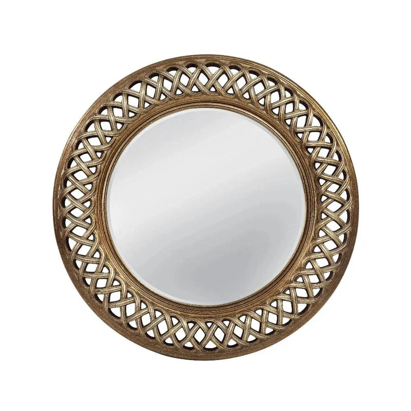 The Alissa Wall mirror features a cut out woven design in an antique gold finish. Turn any room into an exotic wonderland! Dare to push your decor to the next level with the bold and unique Alissa Wall Mirror. Antique gold finish will add a touch of adventure to any space.