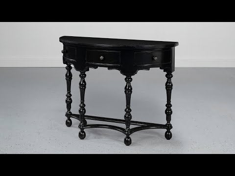 The Abraham Half Round Console with Elegant Black Finish is a stunning addition to any home. Crafted from high-quality acacia wood, this piece showcases a traditional style with a modern twist. Its demi-lune shape and ornate turned legs add a touch of sophistication, making it a versatile fit for various spaces. The console's medium high sheen black finish enhances its elegance, making it suitable for entryways, living rooms, or hallways. This console not only serves as a decorative accent but also as a functional piece for displaying your favorite items.