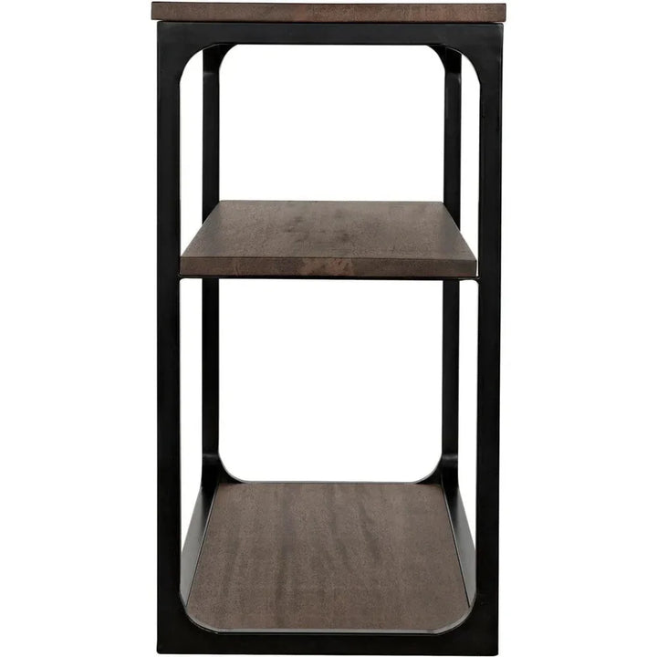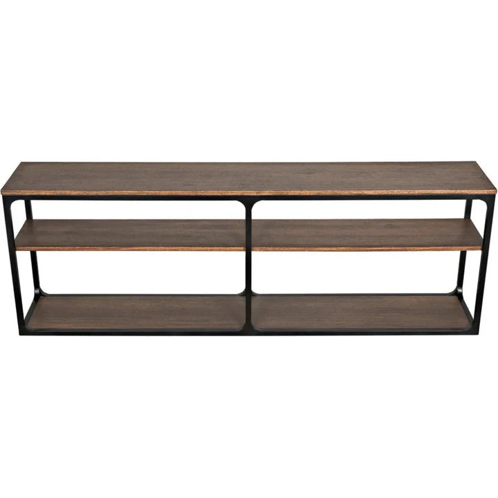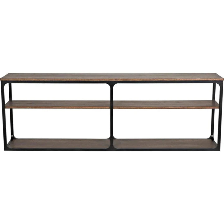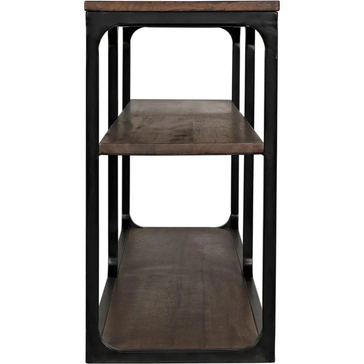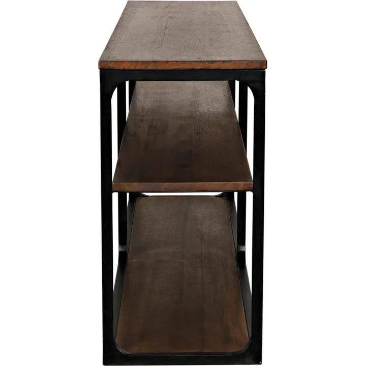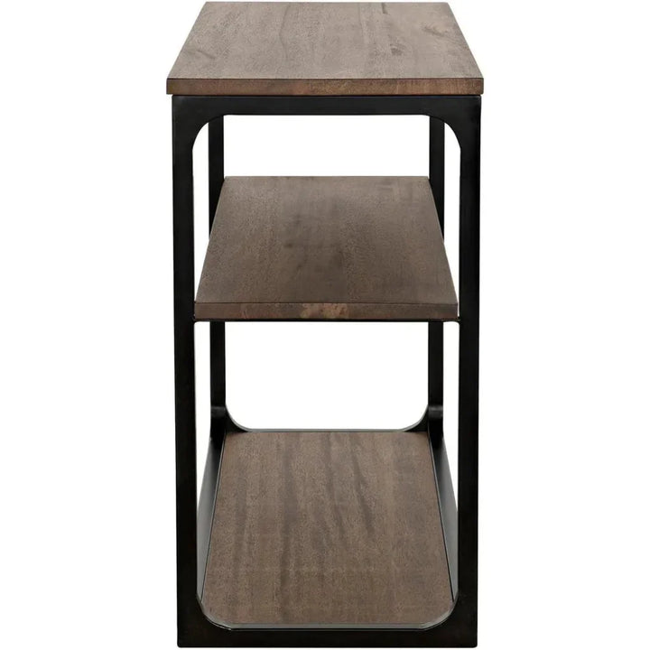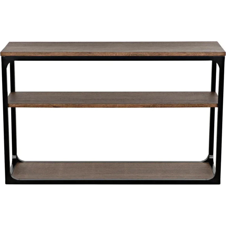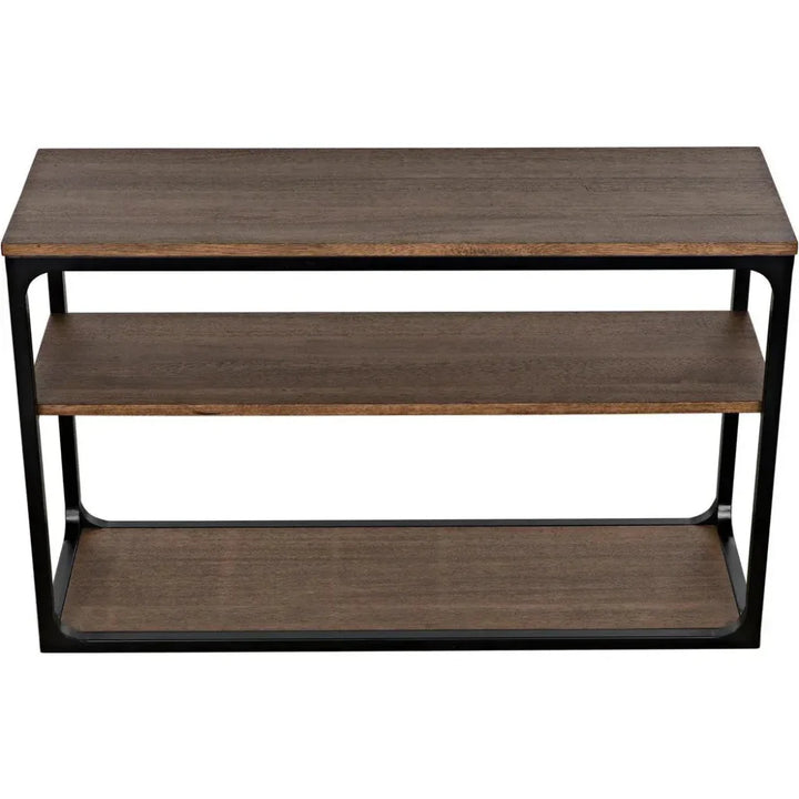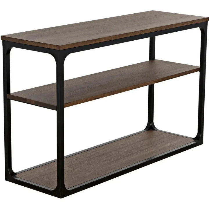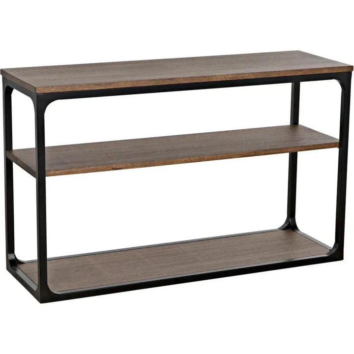 The Novie Black Steel and Wood Console Table offers a minimalist yet sophisticated design, ideal for contemporary interiors. Expertly handcrafted using walnut, industrial steel, and veneer, it is available in large and small sizes with a dark walnut top and matte black frame. Each piece showcases clean lines and precise construction, reflecting the skill of master craftsmen. The console’s sleek silhouette, hand-applied finish, and modern appeal make it a functional and stylish choice for entryways, living rooms, or hallways.
