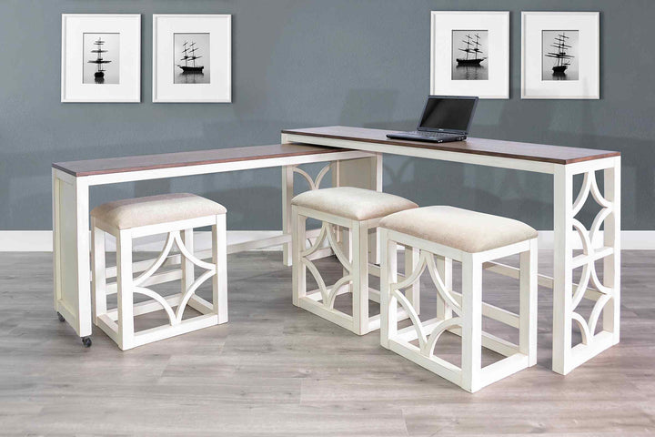 - Overall Dimensions (WxDxH): Console - 72x18x36, Nesting - 67.5x16.5x32, Stool - 19.5x15x24