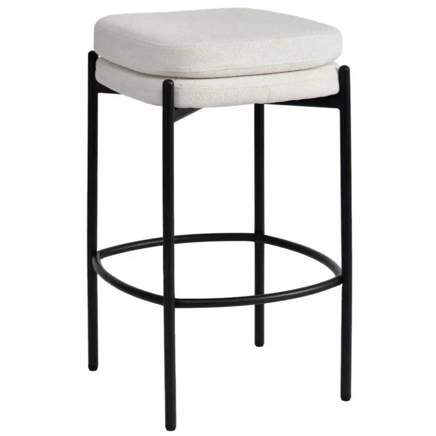 The Nina Counter Stool in Oatmeal offers a sleek and modern aesthetic that fits effortlessly into any kitchen or bar setting. With its minimalist design, this stool features a light beige cushion that adds a touch of elegance to your space. The black metal frame not only complements the upholstery but also provides sturdy support. Designed for comfort and style, this armless stool is perfect for casual dining or entertaining guests.