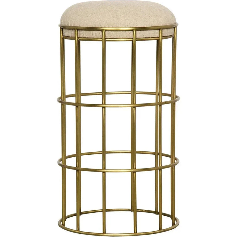 Elevate your space with the glamorous Ryley Counter Stool. Crafted with stunning art deco inspirations, the cage-like metal base boasts a burnished gold finish and sturdy support. The upholstered linen seat adds both style and functionality to your decor. Add a touch of luxury to your home with this sophisticated addition. A glamorous look with art deco inspirations, the Ryley stool has a cage like metal base with a burnished gold finish, and an upholstered linen seat. Crafted with stunning art deco inspirations, the Ryley stool boasts a burnished gold finish and an upholstered linen seat. Its cage-like metal base provides a glamorous touch and sturdy support.