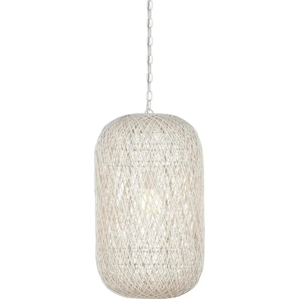 27 in. Cocoon Iron and Glass White Pendant - LOOMLAN - Currey & Co - Pendants