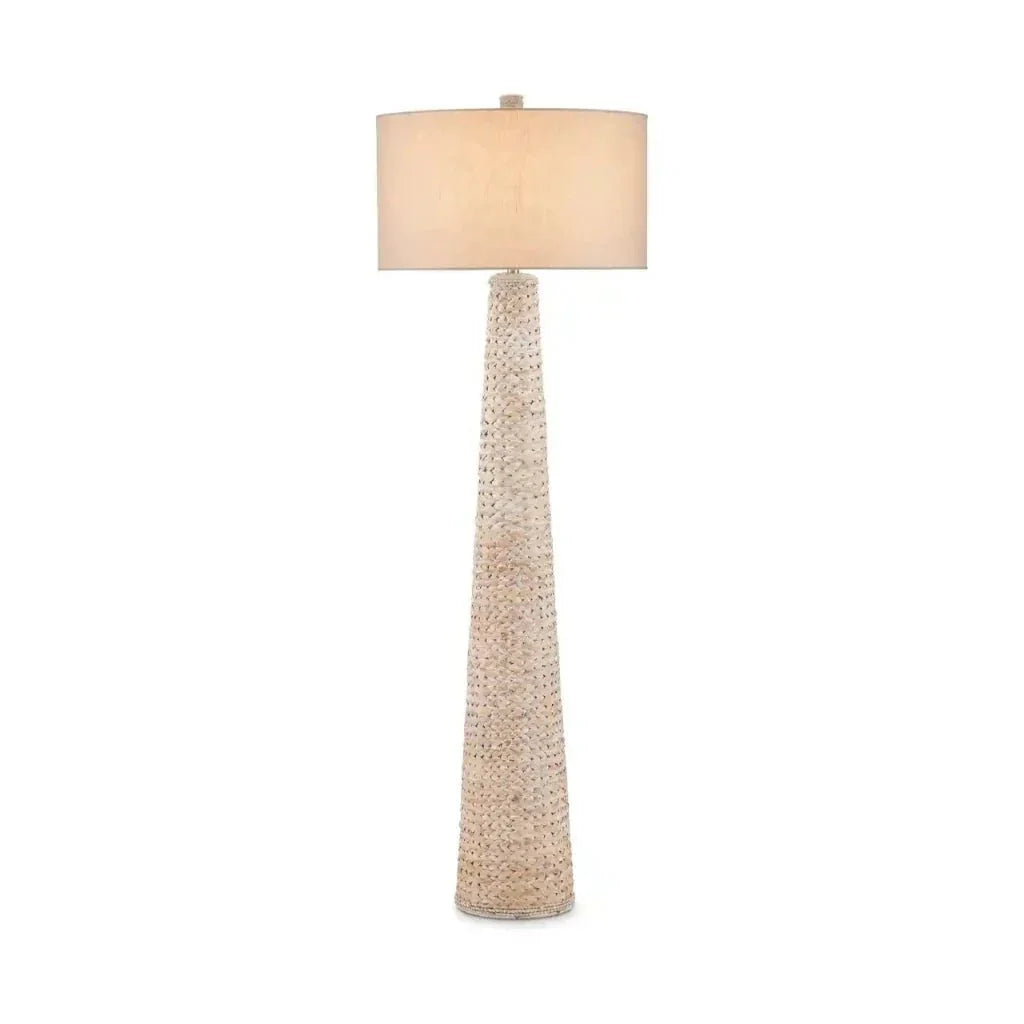Standing tall, this floor lamp is not only functional but also a statement piece. The off-white linen drum shade complements the woven base, adding a soft glow to your space. Its statuesque form and matching finial complete the cohesive look. Ideal for indoor use, it fits well in living rooms, bedrooms, or any area needing a stylish lighting solution. The Birdsong Whitewash Floor Lamp is more than just a lighting fixture; it is a piece of art that promises to elevate the ambiance of your home.
