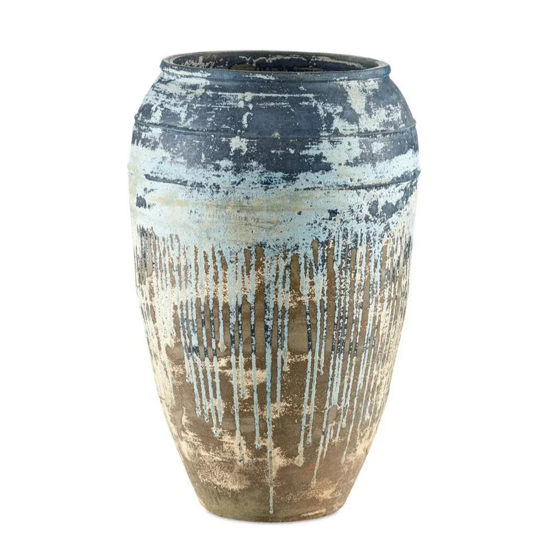 Large Antique Blue Drip Outdoor Planter-Outdoor Accessories-Currey & Co-LOOMLAN