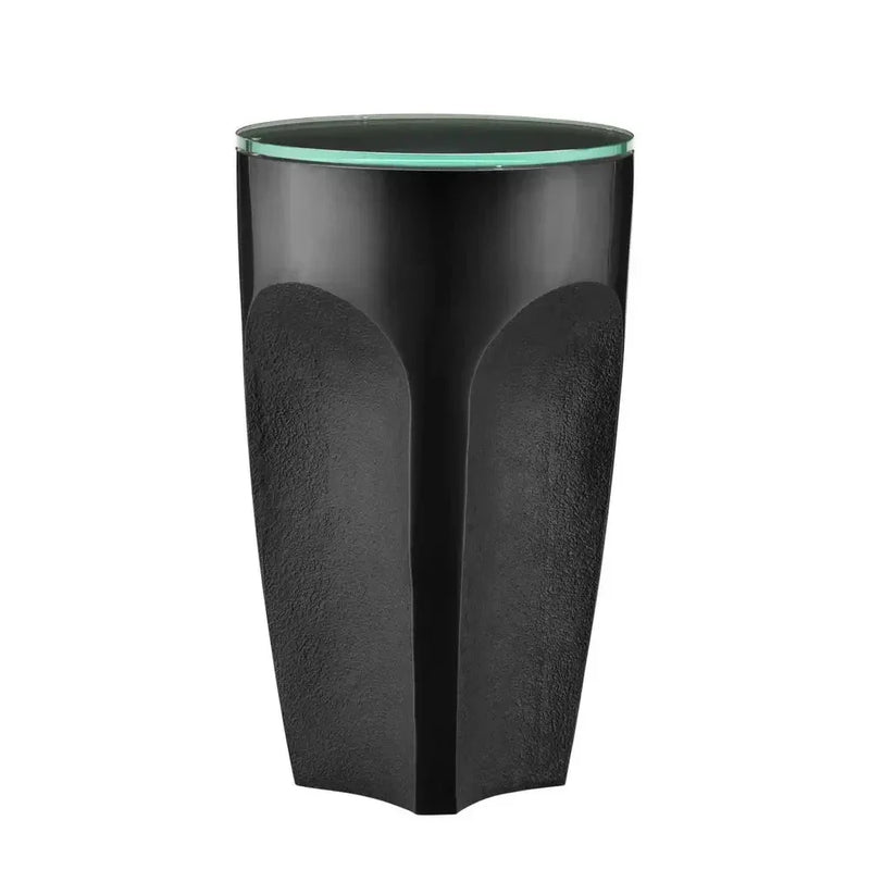 The Lemy Drinks Table is stylish and functional pieces designed to enhance any indoor space with their contemporary elegance. Available in textured black finish, this table feature a sturdy stainless steel frame with a tempered glass top, offering a durable and refined surface for drinks or decorative items. The cylindrical shape and textured surface of this table its create unique visual appeal, while it compact size makes it ideal for smaller spaces.