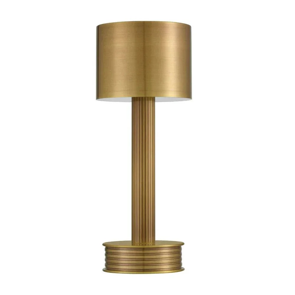 The Traverse Modern Cordless Table Lamp collection seamlessly combines stylish design and functionality, providing adaptable lighting solutions for any area. Sporting a satin brass finish, the Traverse Brass Cordless Rechargeable Table Lamp exudes a sleek and shiny appearance that complements contemporary decor. Its compact and cylindrical shape allows for effortless relocation, while the ribbed base and cylindrical shade add an elegant touch.