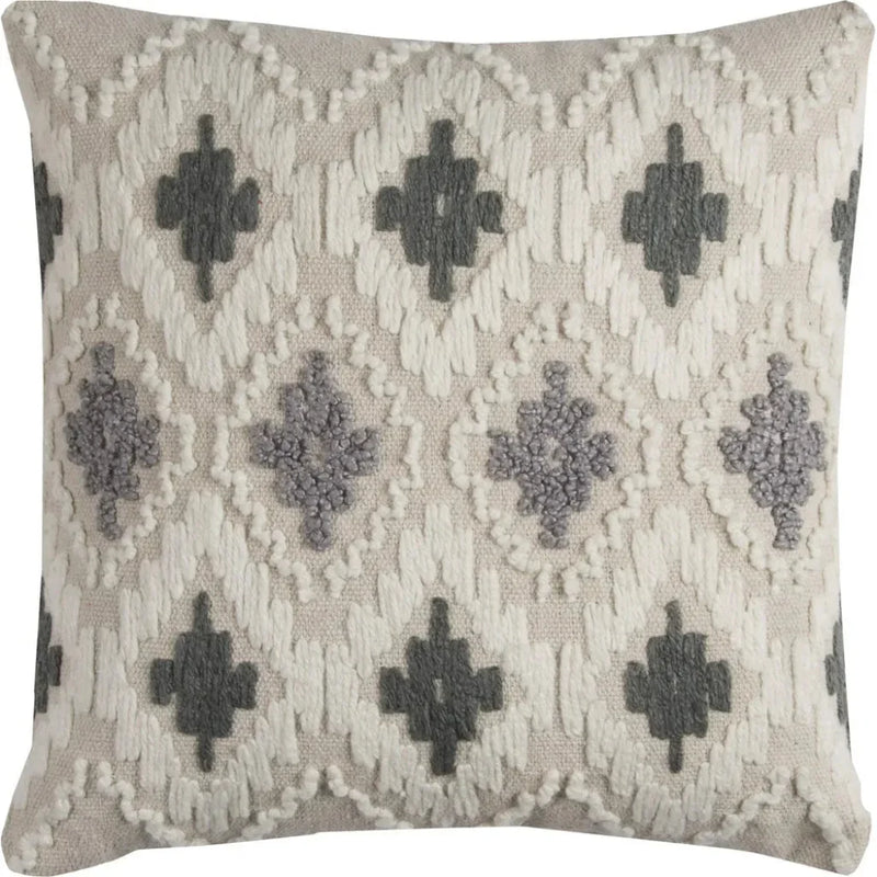 The light texture of this cotton canvas pillow is the perfect background for this wonderfully executed embroidery patterning. Ikat designs in two shades of blue with alternating patterning around the blues in soft ivory on the natural background give this pillow a timeless and classic appeal. Knife edged, this pillow features a coordinating solid cotton back with a hidden zipper closure. This ikat-inspired urban farmhouse throw pillow from Rizzy Home is ideal for both traditional and contemporary decor styles. This gorgeous 20" x 20" pillow features a subtle yet dimensional diamond geographical pattern in two shades of indigo and natural. Its light texture of cotton canvas adds an extra layer of cozy dimension, giving this throw pillow stylish depth and character. You'll love the chic cottage vibe that this Rizzy Home pillow will add to your home.