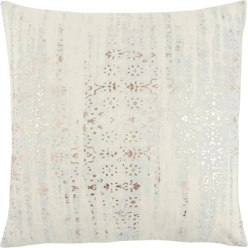 Vintage distressing with just a kiss of silver foil overprint makes this pillow a softly understated design element adaptable to a variety of style genres. Placed alone in a monochromatic color scheme or used as a layering piece for a more curated look, this pillow is as versatile and as it is unique. Knife edged, this pillow features a solid coordinating cotton back with a hidden zipper closure for ease of fill. Add some warmth and personality to any room in your home with this 20" x 20" cotton flax blend accent pillow from Rizzy Home. It is a transitional piece with a modern industrial and modern farmhouse vibe featuring a subtle underprint of soft silver foil with a tribal-inspired patterning. This eye-catching pillow features a knife-edged finish, in natural and silver metallic colors, for an updated, luxurious look. It's designed with a hidden zipper closure to make adding or removing the pillow filling simple and turnkey. A modern yet timeless accent piece, this pillow can blend seamlessly into any style of decor.
