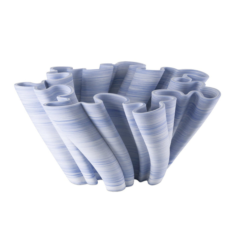 The Twirl Blue Bowl is a delightful piece for any home, seamlessly blending art and function. Made from 3-D printed porcelain, this bowl gives the appearance of twisting as it rises, thanks to its unique design. The blue and white clay is mixed before entering the printer, creating beautiful textural striations. Each bowl has a one-of-a-kind pattern, but the overall design remains consistent, making it a standout piece in any setting.