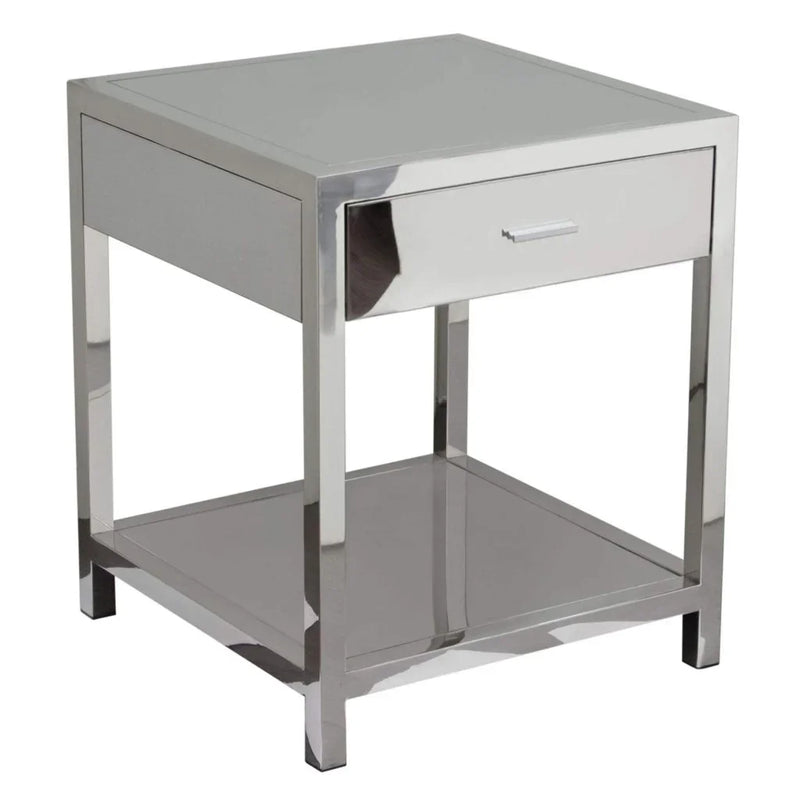 The Corleo 1-Drawer Accent Table is an elegant piece from the Diamond Sofa Stainless Steel Collection. Crafted with meticulous attention to detail, it boasts an Artisan quality polished stainless steel finish that shines with sophistication. This versatile table offers not only style but also function, making it a perfect addition to any room. Whether placed in the living room or used as a nightstand, its sleek design fits seamlessly into various decors.