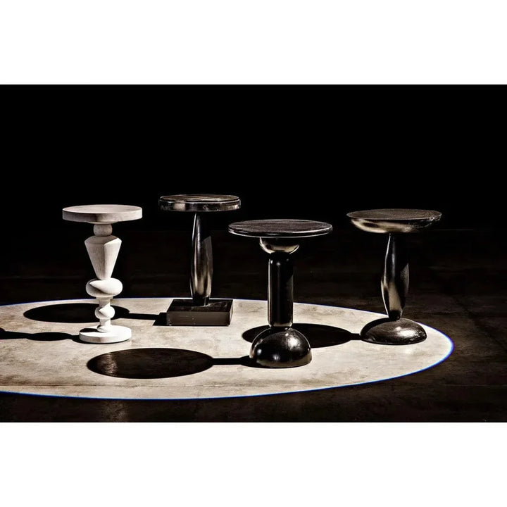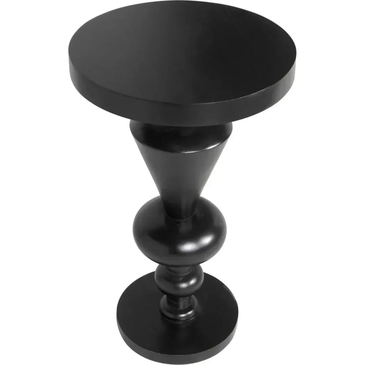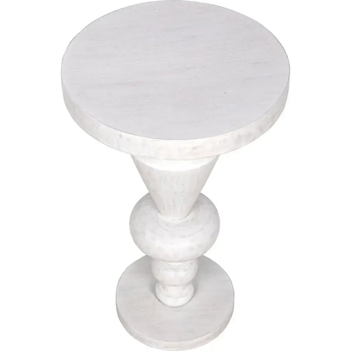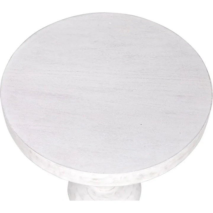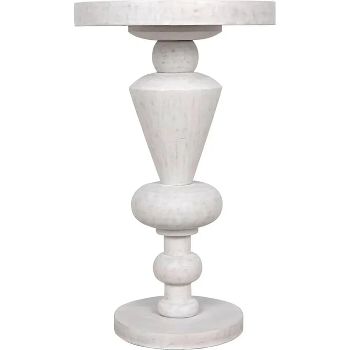 The Fenring Side Table brings timeless style and expert craftsmanship to your home. Available in two distinct finishes—Hand Rubbed Black and White Wash—each version is meticulously crafted from solid mahogany. The Hand Rubbed Black variation offers a bold, refined presence with its rich finish and clean silhouette. In contrast, the White Wash version features a delicately hand-applied finish and an intricately turned leg connecting a circular top and smaller round base, giving it a soft and elegant aesthetic. Both versions share a sturdy, compact profile that makes them ideal for any living space, combining function with a distinct artistic touch.