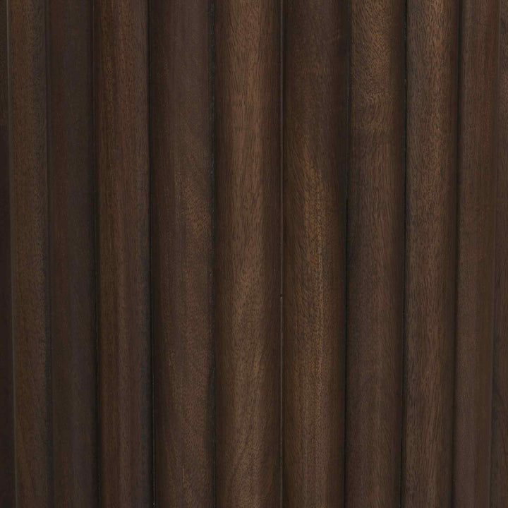 The Marbrello Side Table is a stylish piece for any room. It has a round pink marble top that sits on a fluted espresso wood base. The table's design is elegant, with intricate details that add a touch of luxury to your living space. Its solid and manufactured wood construction ensures durability. The marble is unique, with natural patterns and color variations, making each table one-of-a-kind. This side table can be a striking centerpiece in a refined living room or a luxe lounge setting, adding both beauty and function to your decor.