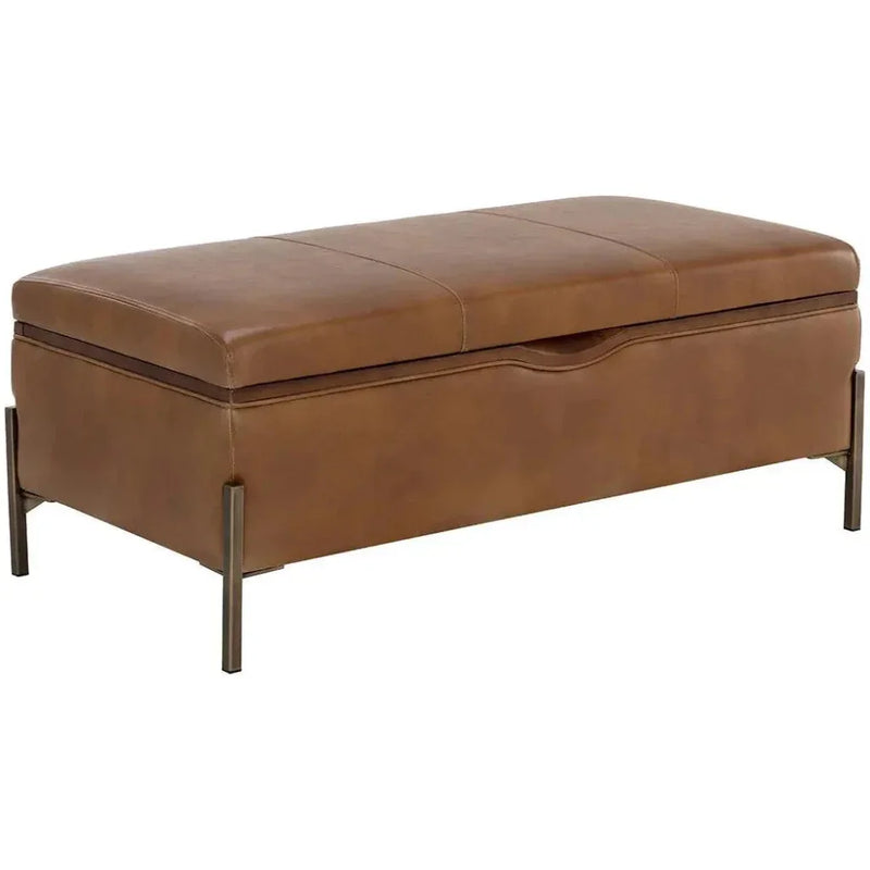 Kael Storage Bench Tobacco Tan Modern Faux Leather Features: