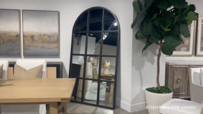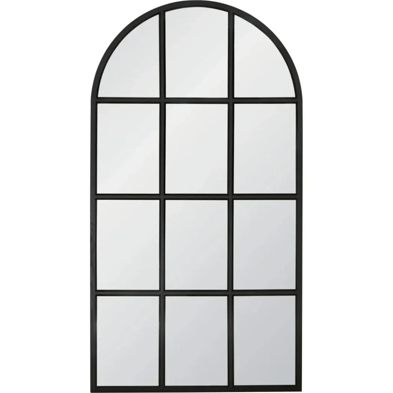 Create the look of a more spacious space with the Grid Arched Mirror by Essentials For Living. This stunning transitional-style mirror seamlessly blends classic and contemporary design elements. Featuring an arched solid oak frame with a modern matte black oak finish, this mirror showcases exquisite double lamb's tongue wood edge detailing. Crafted from high-quality solid oak wood, plywood, and glass, it offers both durability and elegance. With impressive dimensions of 46" wide, 2" deep, and 84" high, this oversized mirror is perfect for floor use. You can easily lean it against the wall and secure it with the included hardware to ensure stability and safety.