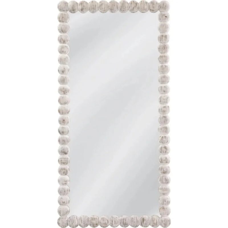 The Mandith Floor Mirror features a white-washed decorative frame. Anti-tipping hardware included. It is not recommended to hang on the wall. The hand crafted details produced by a skilled artist lends itself to a unique technique and will vary slightly. Step out of the ordinary with Mandith Wood White Wash Vertical Floor Mirror!