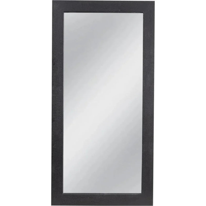 The Timely Floor Mirror has clean rustic lines with a black matte finish.Anti-tipping hardware included. It is not recommended to hang on the wall. The hand crafted details produced by a skilled artist lends itself to a unique technique and will vary slightly. Go big and bold with the Timely Wood Black Vertical Floor Mirror!