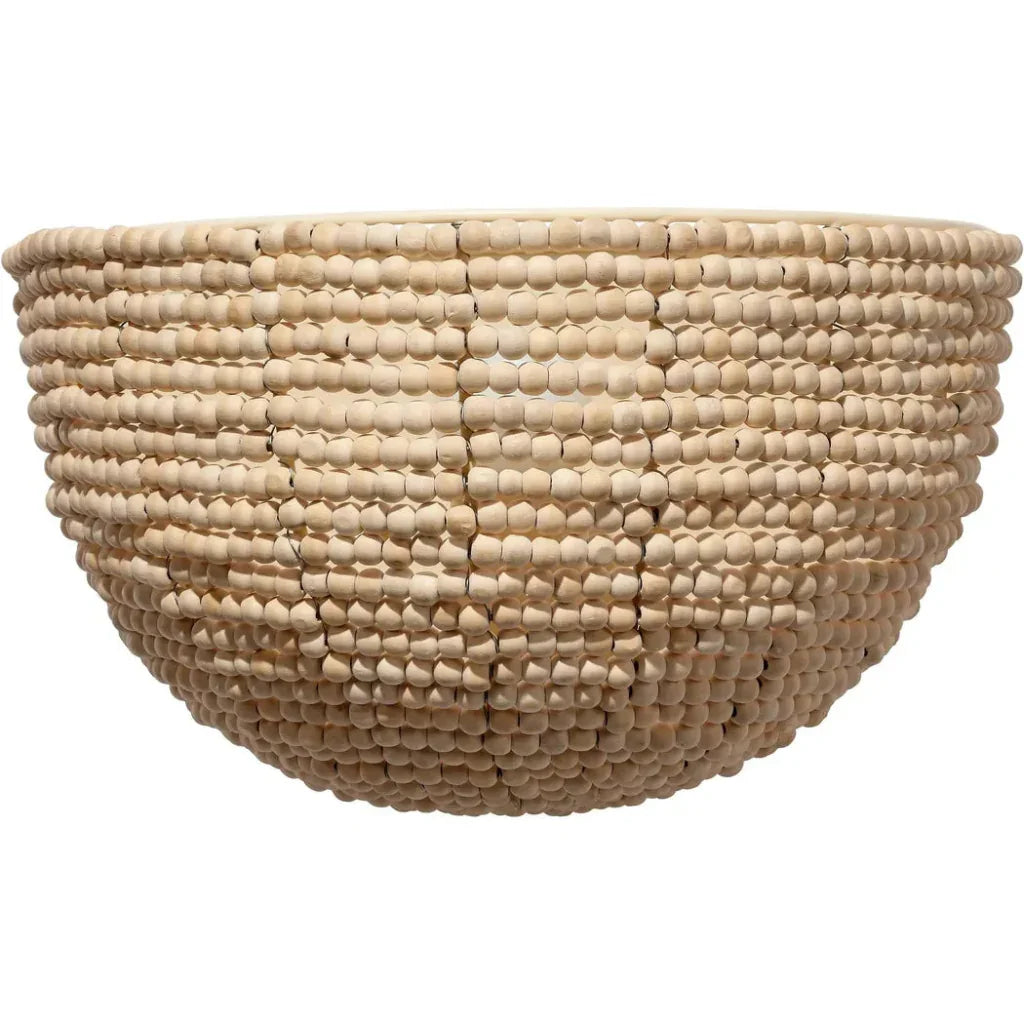 Introducing the exquisite and exclusive Barnacle Beaded Demi Lune Sconce. Handcrafted with countless smooth mango-wood beads, this sconce embraces a coastal aesthetic and elevates any environment into a serene sanctuary. Choose your preferred orientation for maximum impact and make a refined statement with a pair. Each sconce is meticulously made by hand, using hundreds of delicate mango-wood beads to conceal the sturdy iron frame within. Its effortless vibe is perfect for a casual coastal feel. You can hang it facing upwards or downwards, and for even more impact, consider pairing them together. Bring a touch of luxury to your space with our handmade Barnacle Beaded Demi Lune Sconce. Each sconce is adorned with sleek mango-wood beads, encasing a strong iron frame and creating a cool, coastal vibe.