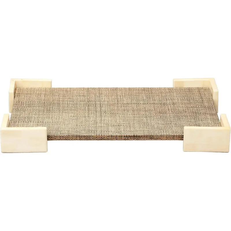 Add a touch of elegance to any room with the Paradise Bone Tray. Crafted with beautiful bone and woven raffia, this tray is not only decorative but also functional. Lined with Chambery fabric, it can be used for organizing books, displaying decorative items, or even as a workspace accessory. Its versatile design makes it a timeless piece for any home. Beautiful bone is paired with woven raffia to create a decorative tray of unusual beauty. Lined with Chambery fabric, it can be piled with books or topped with a collection of small decorative items. With an easily integrated neutral palette and bold but simple design, it also makes an ideal addition to a workspace.