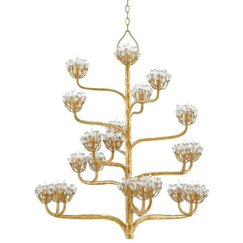 The Agave Americana Gold Chandelier is a grand light fixture inspired by the Century plant of the American desert. The 22 lights that shine from this fixture are surrounded by clusters of faceted crystals. The metal in a dark contemporary gold leaf finish creates a lovely glow. The Agave is in our Marjorie Skouras Collection. Adjustable from 48.5" to 117.5" with use of included chain/rod kit/cable. If your space calls for a longer drop, additional chain/rods/cable is available for purchase.