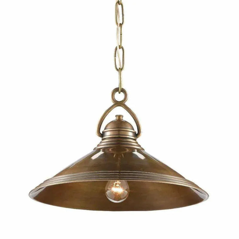 The Weybright Pendant references vintage industrial style. Made of brass in a vintage brass finish, the design notes that make this brass pendant so special include the sophisticated shape of the hook that fastens the fixture to the chain and the ribbed details on the shade. Adjustable from 13.5" to 83.5" with use of included chain/rod kit/cable. If your space calls for a longer drop, additional chain/rods/cable is available for purchase.