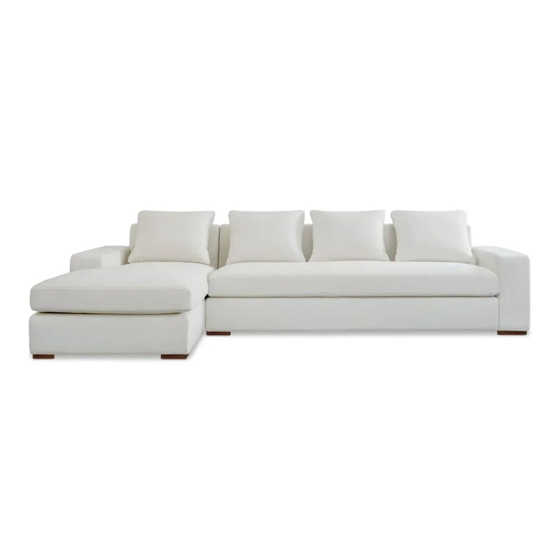 The Thomas Sectional Collection is a perfect blend of oversized comfort and modern style, designed to fit seamlessly into any living room. Available in ivory, rust, and grey, these sectionals are crafted with 100% polyester upholstery, offering both durability and a soft, luxurious feel. The wide track arms and bench-style seat design provide ample space for lounging, while the foam core and 70% feather blend cushion ensure plush comfort. Each sectional includes removable and reversible back cushions, allowing you to adjust the seating to your liking. The solid wood and plywood frame guarantees long-lasting stability, making these sectionals ideal for family living.