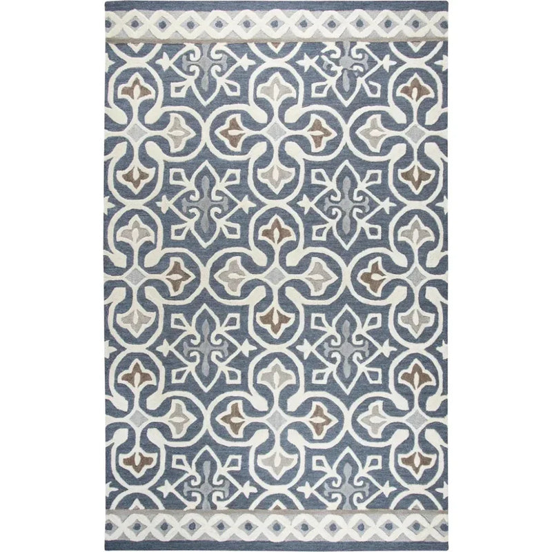 Embody the unique, bold look of raised crosses of ivory, grey, and brown on the deep blue background of this Lavine Medallion Rug, finished at two ends with a beautiful Byzantine-style accent. This piece is hand-made of 100-percent wool, woven with a low loop and a high cut pile to accentuate the patterns that extend to the clean, finished edges-- a piece of art and showpiece for your floor. The Lavine rug collection brings texture and dimension to a whole new level. Hand-tufted using premium wool, these abstract and geometric designs make a dramatic statement to any setting. By combining different dying techniques of on trend colors, different yarn thicknesses, high and low, cut piles, and loop pile where it’s called for, the designers of this collection have created high fashion looks at a very affordable price!