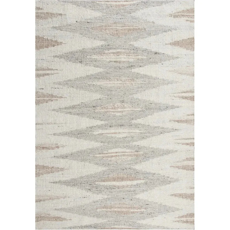 This construction and design of this Taos Rug is a special delight in the Dhurrie Style. Hand-spun of 90-percent wool and 10-percent cotton for a sturdy elegance. Neutral, beige, and ivory are selected to seamlessly align the color scheme of any room in a uniquely designed rug. The look and feel of hand spun wool is unmistakable in this fine crafted Dhurrie rug. Material, construction and design come together to produce a look that is simply casual yet magnificently elegant at the same time.