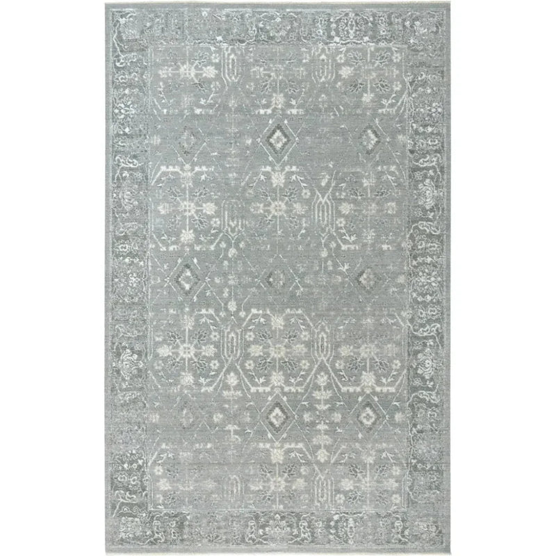Explore your vintage, transitional style using this luxurious rug of New Zealand wool with Tencel, nylon, and wool blend shimmering accent fibers. brings you the Aurora Rug collection in beautiful grey, ivory, and beige colors. Each rug is hand-washed, hand-stretched, hand-sheared, and hand-serged, then finished with a .25-inch fringe at two edges for the look and feel of much more costly items. As part of our exclusive Hybrid collection, Aurora is as close as you can get to a 100% hand knotted rug at a fraction of the cost. Power loomed at our plant in India using New Zealand wool accented with a shimmering fiber of Tencel, Nylon and Wool blend, each piece is then shipped to our hand made facility where it is Hand Washed, Hand Stretched, Hand sheared and Hand serged. To complete the authentic look of a hand knotted rug, Aurora features real fringe trimmed to a short ¼” created from the warp/weft strings.