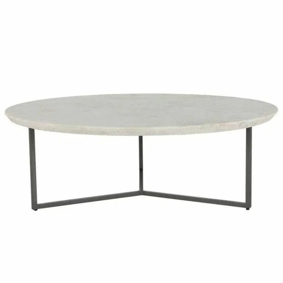 Indulge in luxury with our Chloe Coffee Table Collection. This mid-century modern piece boasts a solid iron base and a stunning white marble top that will elevate any living room. The circular design and sleek construction create an elegant and exclusive atmosphere. An elegant mid-century modern piece that is set in stone. Solid iron legs are topped with a generous white slab of marble for a fresh look. This classic, neutral design will integrate smoothly into your living room. Add a sophisticated touch to your living room with the White Contemporary Chloe Coffee Table. Made with solid iron legs and topped with a white marble slab, this mid-century modern piece exudes elegance and exclusivity.
