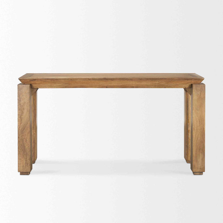 - Constructed from solid mango wood in a natural finish that flaunts the natural grain of the wood.
