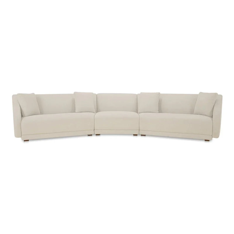 The Fraser 3 Piece Modular Sectional is a stunning blend of modern comfort and mid-century design. With its soft curves and sharp angles, it evokes the charm of the 60s and 70s while maintaining a contemporary edge. Upholstered in luxurious 100% polyester, the sectional's minimalist plinth base offers sturdy support, creating an inviting and stylish seating area. Available in both white and deep blue, this sectional effortlessly complements a variety of interior decors. Its modular design ensures flexibility, allowing it to adapt to different room layouts with ease, while providing a comfortable space for up to five people.
