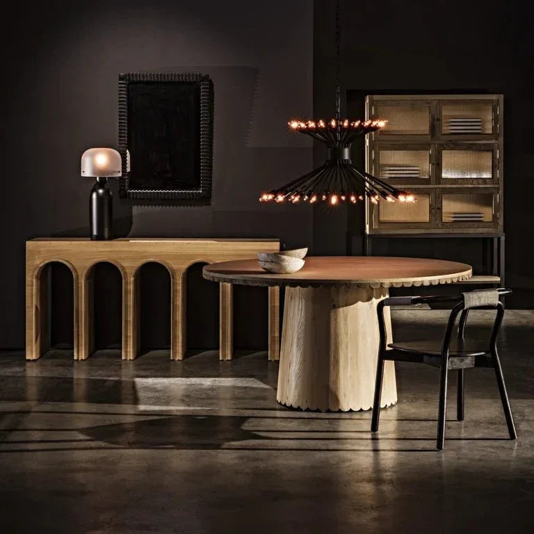 One of NOIR's most compelling aspects is how individual pieces reference specific design eras while feeling completely contemporary. You might find a chandelier that evokes 1920s Art Deco glamour with modern materials, or a console table that captures 1970s boldness with refined proportions.