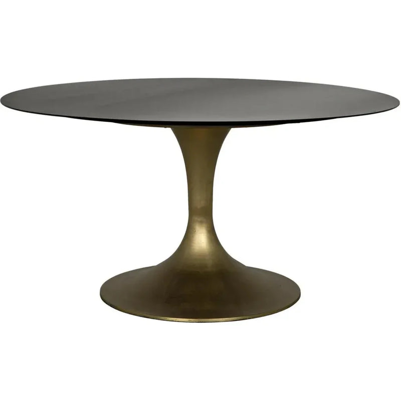Herno Steel Round Dining Table With Brass-Dining Tables-Noir-LOOMLAN