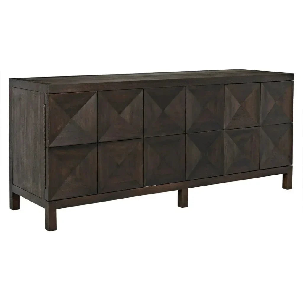 The Quadrant Wood Sideboard blends timeless design with practical functionality, handcrafted from high-quality walnut and available in Ebony Walnut, Dark Walnut, and Washed Walnut finishes. Each sideboard features three intricately carved doors with hidden push latches that open to reveal two spacious interior cupboards, offering generous storage. While the Ebony Walnut version is designed with a rich sealer finish, the Dark Walnut and Washed Walnut versions are treated with a wax coating that allows the walnut to develop a natural patina over time. This sophisticated sideboard fits seamlessly into both traditional and contemporary interiors, combining artisanal craftsmanship with enduring appeal.
