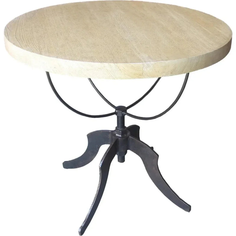 The Wine Wood Round Side Table with Adjustable Base is a flexible and refined addition that will enhance any room's aesthetic. Its adjustable base allows for personalized height adjustments, creating the perfect setup for any occasion, whether it be unwinding or entertaining. With its elegant elm top and sturdy metal base, inspired by vintage designs, this table exudes timeless style. Indulge in the perfect balance of functionality and sophistication with this side table, perfectly sized for a glass of your favorite vintage and an appetizer plate.