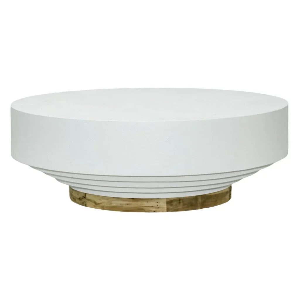 The Tambor Coffee Table brings a touch of elegance to any space with its unique blend of style and functionality. Crafted from durable cast resin, this table features a stone-like texture that adds a natural touch to both indoor and outdoor settings. Its lightweight design makes it easy to move, while the reclaimed teak base provides sturdy support and a hint of rustic charm. The minimalist tiered circular design fits seamlessly into any decor, making it a versatile piece for your living area or patio. This coffee table is not just about looks; it's built to last.