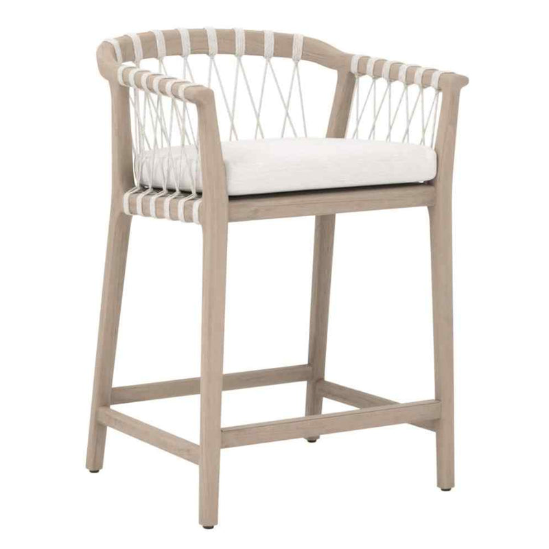 Enjoy a perfect blend of style and durability with the Pacific Outdoor Counter Stool. Designed with a solid teak wood frame, this stool features an Ever Teak finish that stands strong against outdoor elements. The white speckle hand-woven polyolefin rope creates a nautical vibe, while the comfortable, removable seat cushion adds ease and versatility. Ideal for al fresco gatherings, this stool includes an L-shaped metal footrest cover for added support, ensuring a cozy and inviting seating option for any outdoor space. Its light brown color and transitional style make it fit seamlessly into various décor themes, enhancing your outdoor setting.