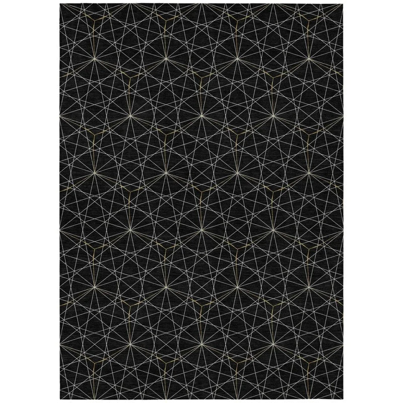Immerse into contemporary elegance with this stunning area rug. Its web-like geometric pattern seamlessly blends transitional elements with bold shapes, making it a centerpiece in any room. The unique design crafted with precision ensures this rug effortlessly elevates the style of your space. Whether you're placing it in your living room, patio, or hallway, its versatility shines through. Engineered with UV stabilization, this rug is perfect for both indoor and outdoor use, maintaining its vibrant appearance over time.