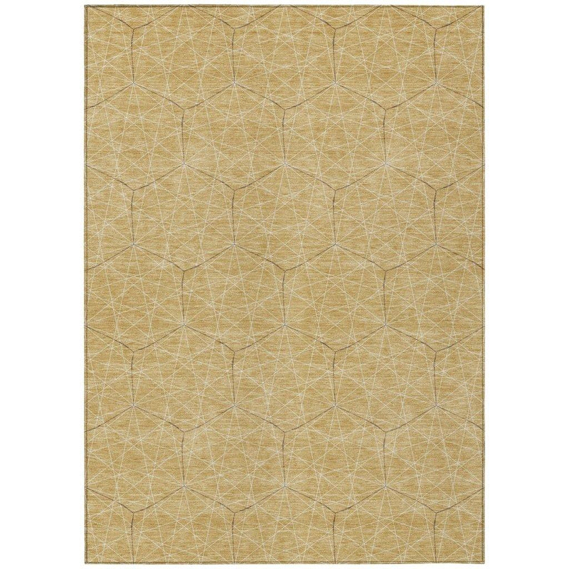The Alina Gold Washable Indoor-Outdoor Rug adds a touch of elegance to any space with its traditional and vintage large center medallion design. This stunning area rug captures the essence of classic oriental styles, bringing sophistication to your home. Crafted from high-quality polyester, it offers the perfect blend of durability and beauty. Its vibrant green color is enhanced with UV stabilization, ensuring the rug maintains its rich hue whether placed indoors or outdoors. The ultra-thin construction allows for seamless placement in various settings, making it a versatile addition to your decor.